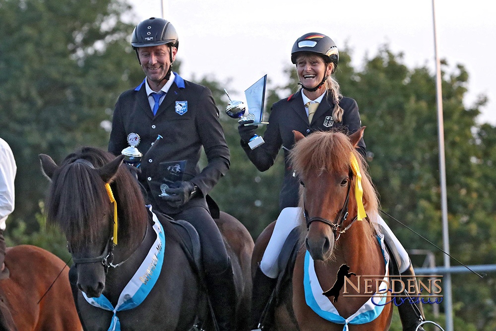 Mit Þokki frá Efstu-Grund konnte sie sich außerdem erneut den ersten Platz im Viergangpreis sichern, und somit Ihren Titel verteidigen. Zusätzlich konnte sie sich mit Dáð frá Tjaldhólum im B-Finale im Viergangpreis den ersten Platz sichern, auch hier beglückwünschen wir ihre Besitzerin Elke Handtmann.