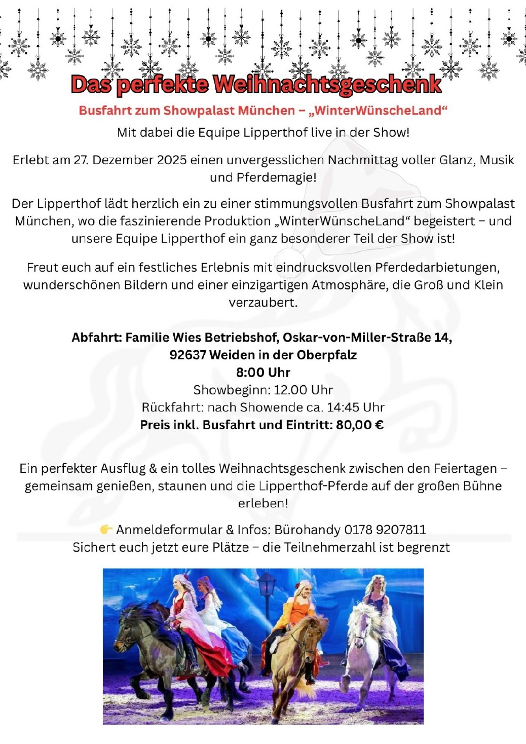 Eindrücke der CAVALLUNA-Wintershow 2023/2024.Die Lipperthof Equipe für die Wintershow 2025/2026 steht bereits, wir freuen uns erneut dabei zu sein!Dieses Jahr fahren wir gemeinsam zu der Show, seit dabei und meldet euch an!