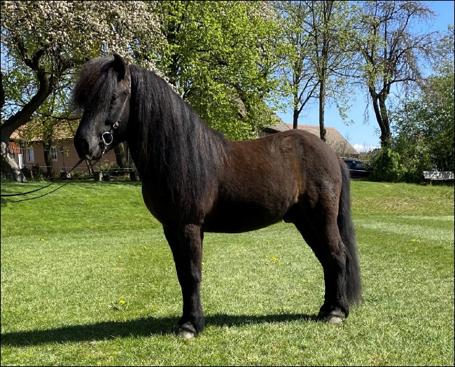 Teitur ist ein hübscher Rappwallach mit tollem Potenzial als Fünfgänger. Er zeigt in seiner Ausbildung viel Bewegung mit lockerem Tölt. |