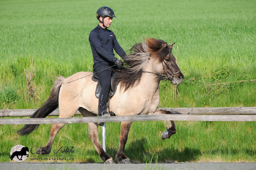 Iðunn ist eine sympathische Fünfgangstute mit tollem Charakter. Sie besticht durch viel flüssigen, taktklaren Tölt und guten Rennpass und zeichnet sich durch ein leistungsbereites Temperament aus. Iðunn ist ein absolutes Spaß- Reitpferd und auch von ihrer Abstammung her für die Zucht extrem interessant.