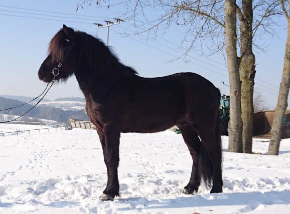 Der Hengst ist unser erster Nachkomme von Næla vom Goldenen Steig, welche eine Bakkus frá Bakka Tochter ist.