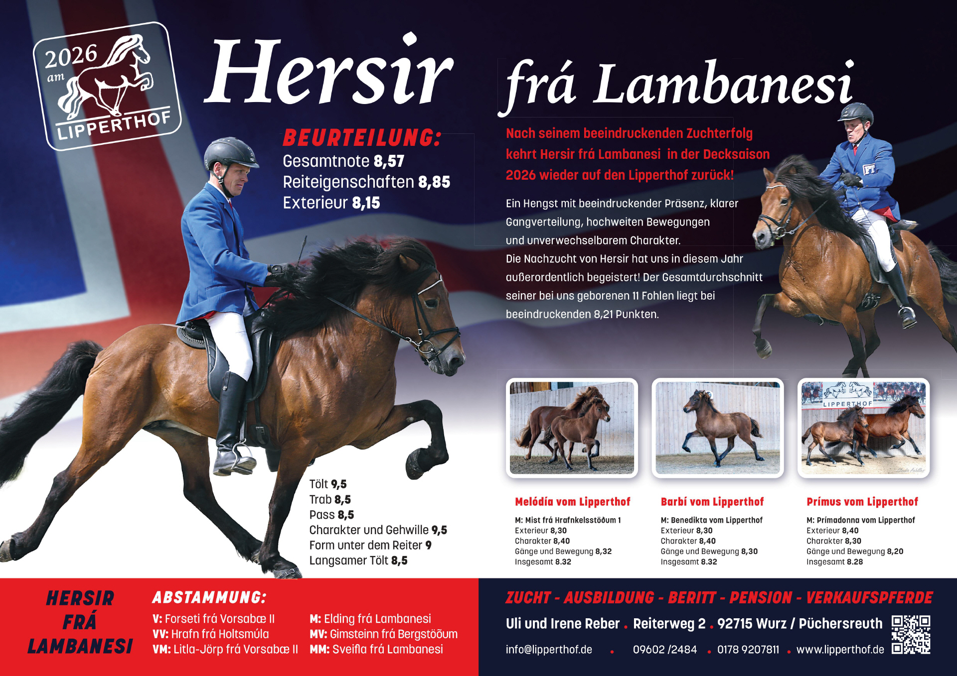 | Exterieur | 8,15 | Langsamer Tölt | 8,5 |